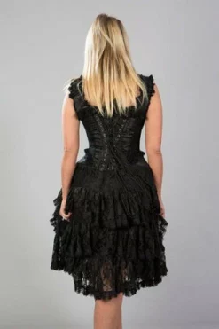 Burleska Sophia Knee Length Burlesque Corset Dress In Black Velvet Flock