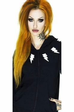 Dr Faust Silver Moon Buttons Nu Goth Women’s Black Hoodie – Ximena