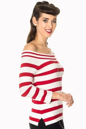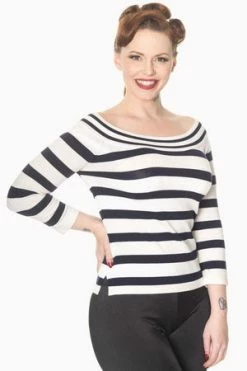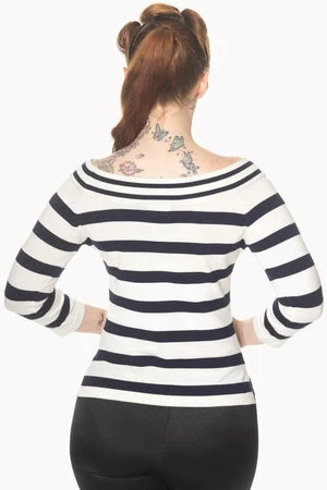 You’ll love this exceptional, nautical style, rockabilly, ladies, striped long sleeve top by Banned, the “ahoi top”.