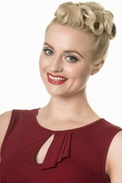 A rockin’ retro style, ladies sleeveless top design designed by Banned Apparel, the basic instinct top, with a teardrop shape cutout at the neckline, available in a choice of colours.