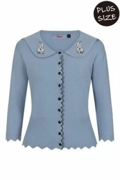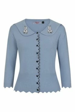 The vintage cardigan has bunny print, V-neckline, trim detail, ribbed hem and cuffs, full length sleeves and it fastens at the front with glossy buttons.