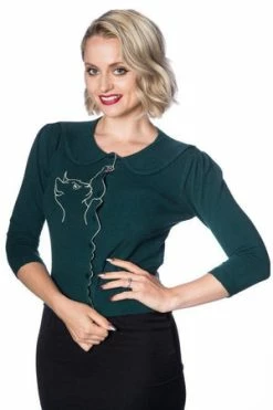 This fascinating rockabilly cardigan from Banned Apparel, is great for keeping warm in winter without having to compromise on style! The style comes in a selection of appealing colours and also up to plus sizes.