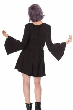 An attractive, vintage, ladies, plus size, short sleeve top by Banned the “celestial off shoulder top”, in blue with an appealing print in white and round neckline.