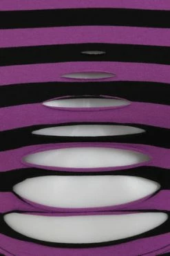 The retro top has striped design, a crew neckline, rip detail, long sleeves and a figure accentuating fit.