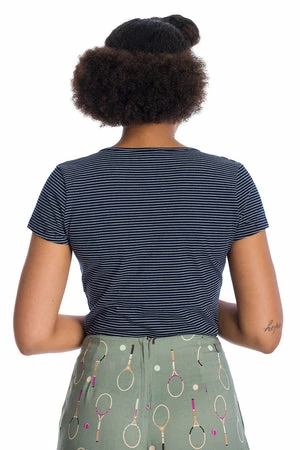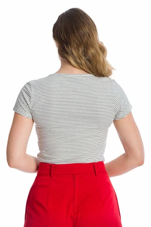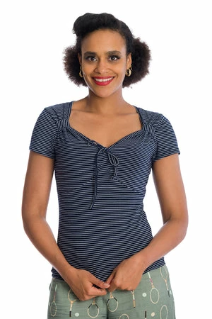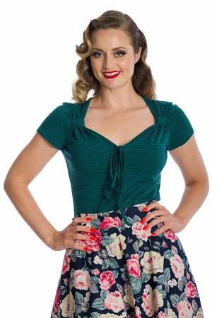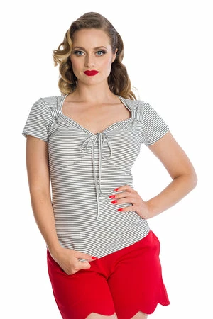 This adorable rockabilly top from Banned Apparel, has the perfect look for all your Summer weekends and holiday getaways. The style is available in white, green or navy color.