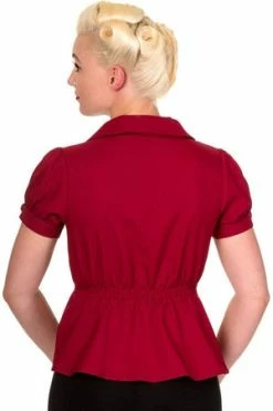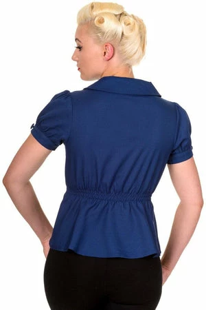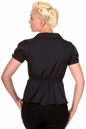 Stun a room when you wear this “Endora” blouse from Banned. Made from 100% polyester with a v neck, ruching at the waist and decorative buttons on the front.
