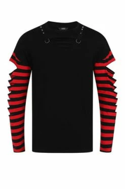 The top has striped design on sleeves, crew neckline, slashed detailing on sleeves and neckline, long sleeves and a regular fit.