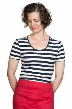 Spend your days in the comfortable and stylish rockabilly t-shirt from Banned Apparel! The style is available in red, black or blue color.