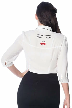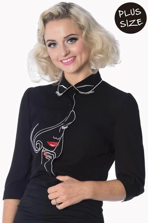 This is a lovely Rockabilly plus size shirt from Banned Apparel, available in black, white, blue and coral.