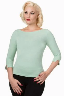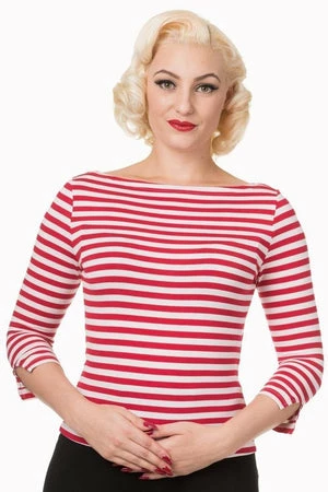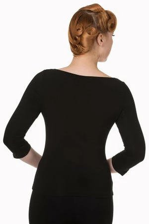 This is a delightful, rockabilly, ladies short sleeve top from Banned, the modern love top.This style is available in a large choice of appealing colours and has a round neckline and half length sleeves.