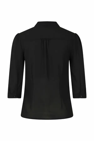 The blouse has a V-neckline with collars, a flattering fit and it fastens at the front with buttons.