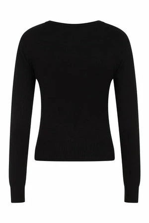 The cardigan has posion and skull embroidery, long sleeves, a crew neckline, a figure accentuating fit, ribbed cuffs and hem and it fastens with front buttons.