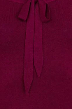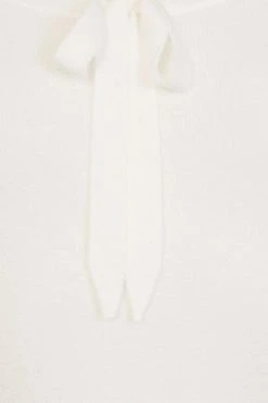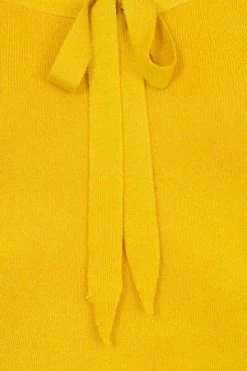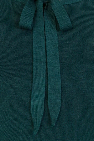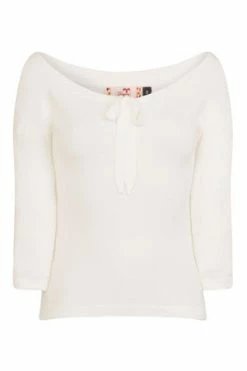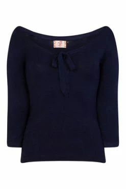 The vintage top has round neckline, front neck tie straps and a figure accentuating fit.