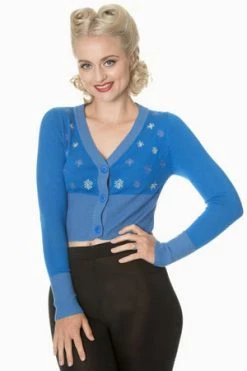 The vintage cardigan has Snowflakes print, V-neckline, long sleeves, a flattering fit and it fastens with buttons at the front.
