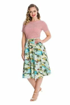 Embrace classic 50s fashion with this irresistible rockabilly top! The style is available in blue, red, purple or pink color.