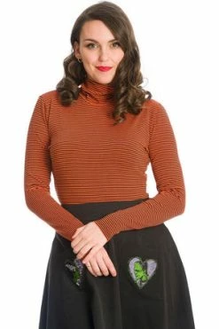 The vintage top has stripe detailing, turtle neckline, long sleeves and a figure accentuating shape.