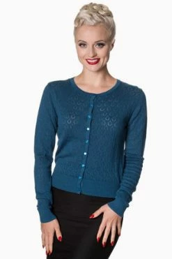 Watch out because you are out to party in this “Watch Out” cardigan from Banned. Made from 60% viscose and 40% cotton, with a teardrop perforation going all over the material and a ribbed collar, cuffs and hem to boot. Available in a choice of colours.