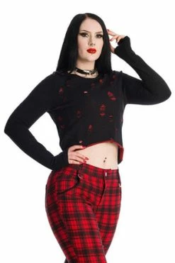 Get wrapped up in badass-gothic style with this tempting black top from Banned Apparel! The style is available in black-red or black color!