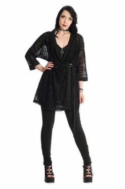 Every sexy-girl will need this superfly Gothic kimono from banned, in her closet, because you can never have too many black clothing.