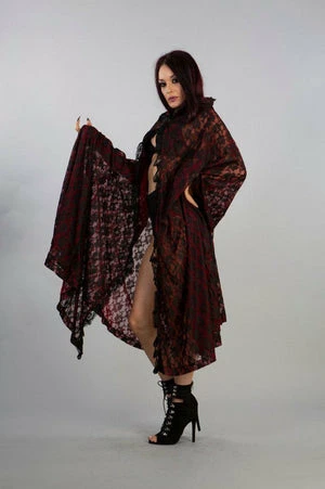 Wear this sexy gothic and steampunk cape from Burleska, it over your tights or over fishnet stockings to give it that sultry twist. The style is available in black-red and cream color.