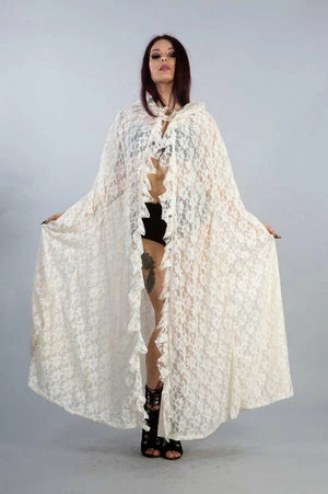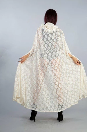 This Cherryl high quality, mesh lining, hooded cape has fine lace and a flattering fit.
