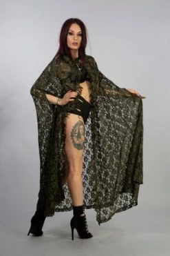 This ultra sexy gothic cape from Burleska, will raise the hotness level of any outfit. The style is available in olive-green, black or cream color.
