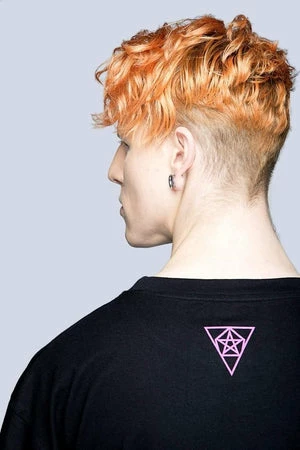 A badassical, unisex short sleeve t-shirt design from Long Clothing, available in black with gold or turquoise and purple print. This style is designed in collaboration with Mishka 2.0 and features a death adder print of a bear head with snake’s tongue surrounded with a link chain.