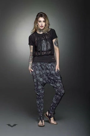 The dark top has an occult moth themed print, front fringes detail, short sleeves, a crew neckline and a comfortable fit.