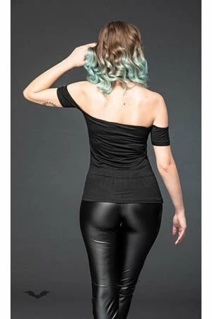 A wicked top for your inner witch, this top is created by Queen of Darkness. With open shoulders and an open back, this top has a large opening at the front with a ring keeping the top together.