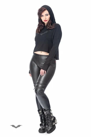 This awesome long sleeved shirt is designed by Queen of Darkness. A short length top, this features a wicked bat print on the front, and a hood to give you some cover from the rain.