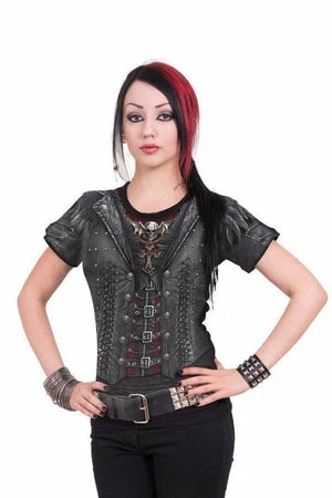 Nocturnal royalty at her most graceful and dangerous. Unleash your inner seductress in this gothic top from Spiral Clothing. Pair it with a skirt or jeans for a casual gothic look.
