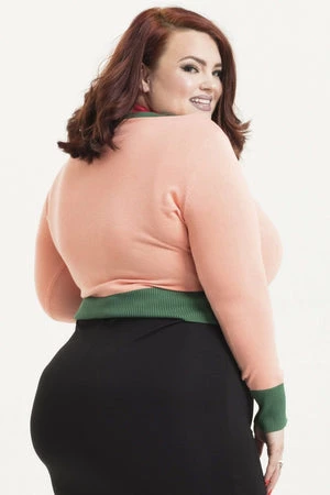 Give your alternative fad wardrobe a makeover with “Baby” a cute pink, Rockabilly plus size cardigan from Voodoo Vixen.