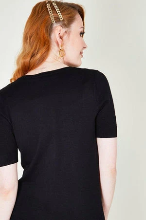 This enticing rockabilly cardigan from Voodoo Vixen, is perfect for a one of a kind head-turning peek-boo look! The style is available in mint or black color