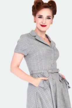 The midi dress has plaid pattern, pockets, bow pocket detail, wide collar, button detailing, short sleeves, a V-neckline, flattering fit and it fastens with buttons at the front.