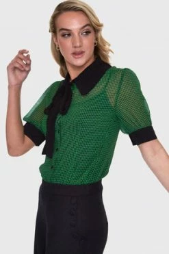 All eyes will be on you and your celebrity style rockabilly top from Voodoo Vixen! The style is available in purple or green color.