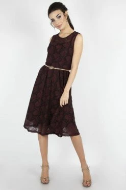 This sleeveless midi dress has leaf designs, a U-neckline, a great fit and it fastens with a button and a zipper at the back.