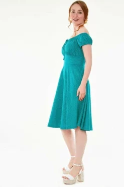 Watch those heads turn once you get this cute dress from Voodoo Vixen! The style is available in pink or teal color!