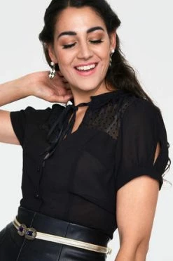 Add instant retro drama to your look with this stupendous rockabilly top from Voodoo Vixen!