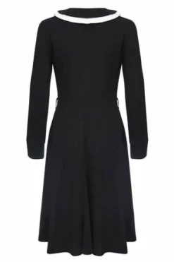 This sleeveless, midi dress has contrast double collar and cuffs, a round neckline and a flattering fit.