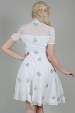 Voodoo Vixen Wonder White Chiffon Floral Embroidered Flared Dress