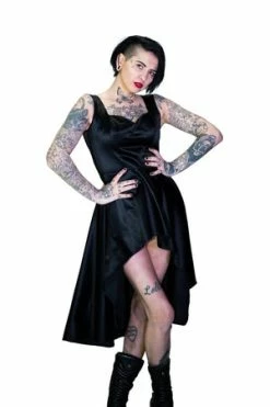 Dr Faust Bow Net Back Raw Silk Black High-Low Dress – Saanvi