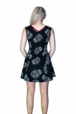 Dr Faust Grey Sugar Skulls Halterneck Black Mini Dress – Medea