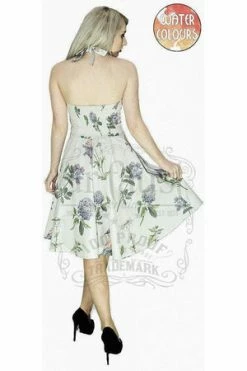 Dr Faust Purple Flowers And Exotic Birds White Midi Dress – Rhea