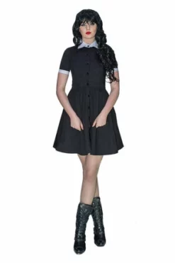 Dr Faust Short Sleeve Wednesday Addams Black Mini Dress – Samara