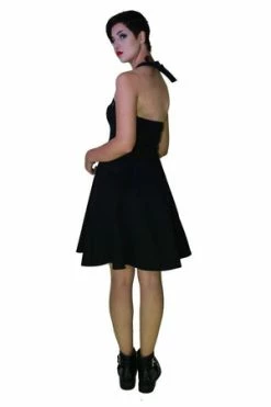 Dr Faust Silver Eyelets Halterneck Black Midi Dress – Simone