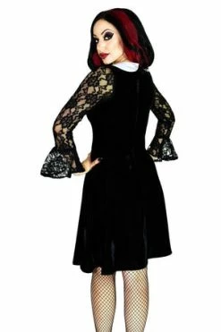 Dr Faust White Collar Long Sleeve Black Velvet Mini Dress – Ayla